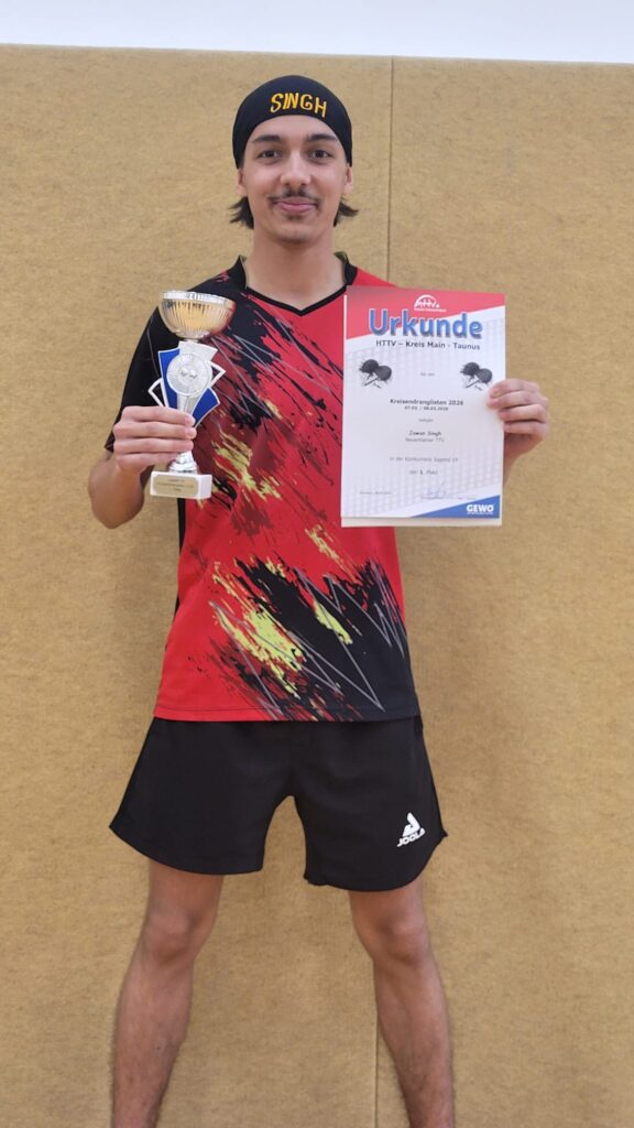 (8.3.26) Großer Erfolg für die Nachwuchsspieler des Neuenhainer TTV bei der Kreisrangliste des MTK, die am Wochenende in Eschborn ausgespielt wurde. Aus mehreren Podestplätzen ragten die Siege von Carl Marwede bei der J15 und Jowan Singh bei der J19 nochmal heraus.